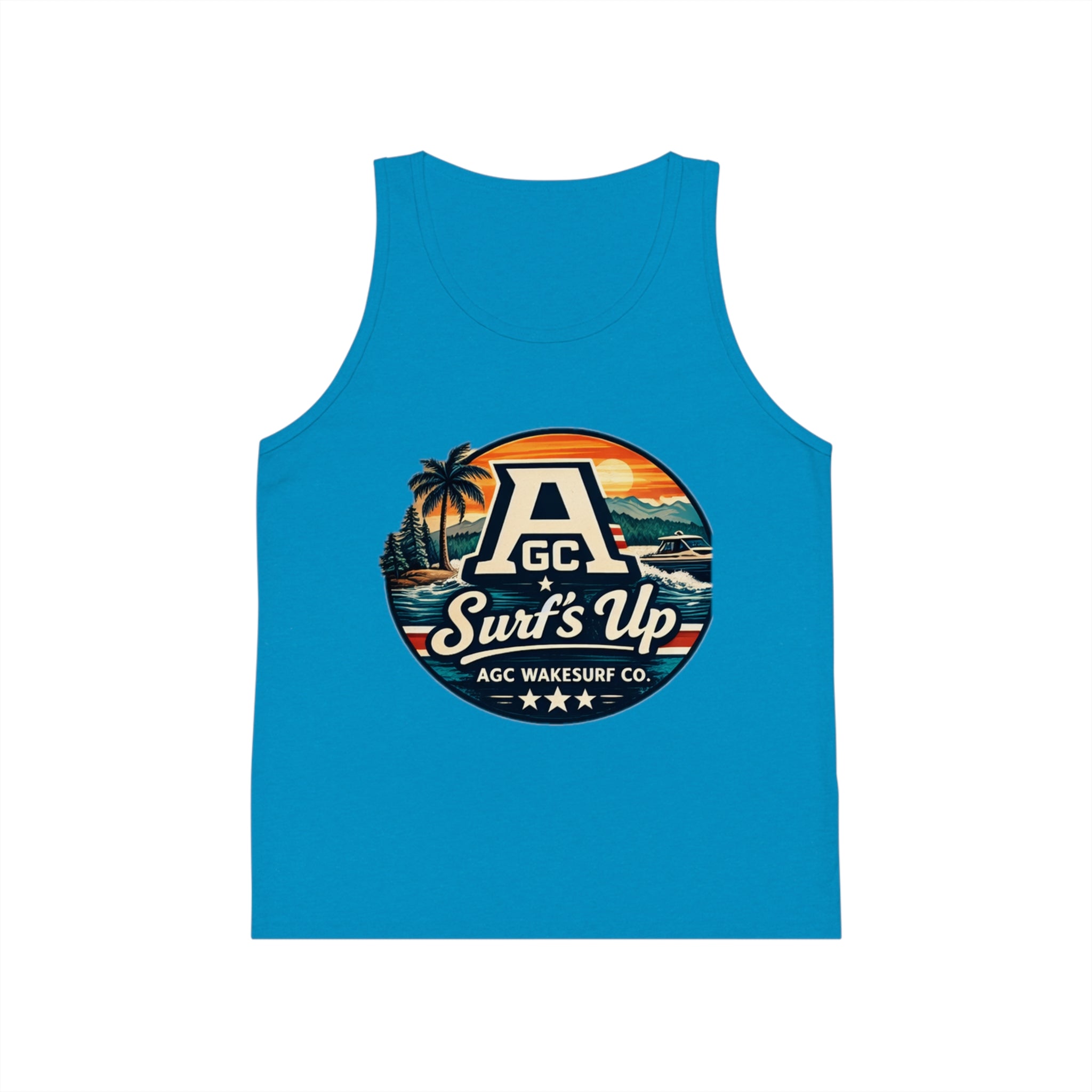 Sun-warmed afternoons, salty air, and the soft slap of waves — this kid’s tank brings that summer feeling to everyday adventures. Lightweight, breathable fabric keeps little ones cool while they chase shorelines or build sandcastles. The retro surf badge with palm trees and an ocean horizon adds playful vintage flair that sits perfectly on a sun-bleached day at the beach or layered under a hoodie when the evening breeze rolls in. Built with a retail fit and thoughtful details like side seams and a ribbed collar, it wears comfortably through active play and washes down ready for the next outing.