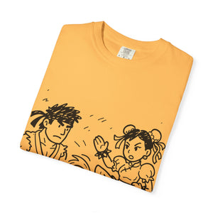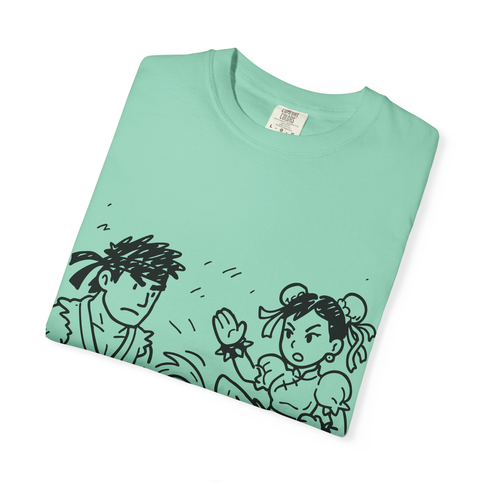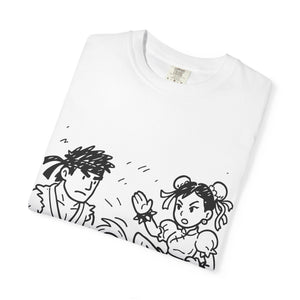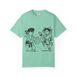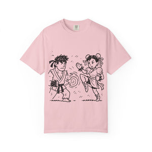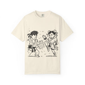A street fighter-inspired T-shirt that adds a touch of urban flair to any wardrobe. Perfect for casual wear or as a statement piece for fans of the game. Ideal for gamers, geeks, and pop culture enthusiasts. Great for birthdays, game nights, and comic conventions.